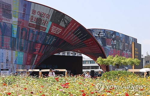 (서울=연합뉴스) 이재희 기자 = 제5회 카지노 사이트 꽁머니 개막일인 26일 서울 종로구 열린송현녹지광장에 대형 조형물이 설치돼 있다. 2025.9.26 scape@yna.co.kr